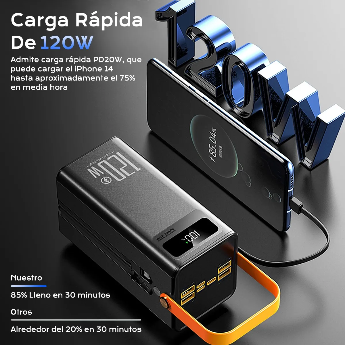 • 🔋 Capacidad masiva de 50 000 mAh para múltiples cargas completas.